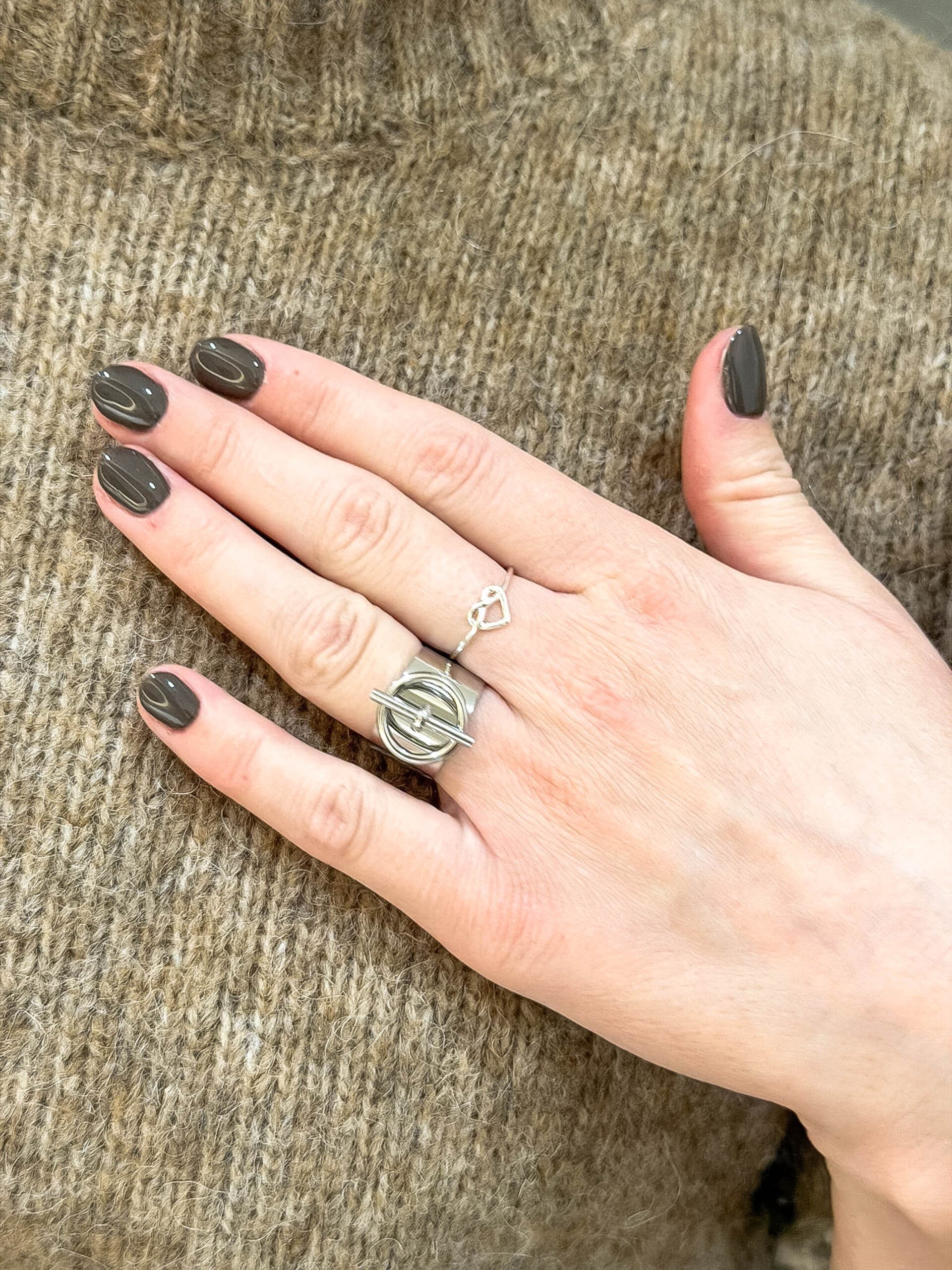 La bague Axis habille la main avec audace et raffinement — idéale seule ou associée à d'autres bijoux.