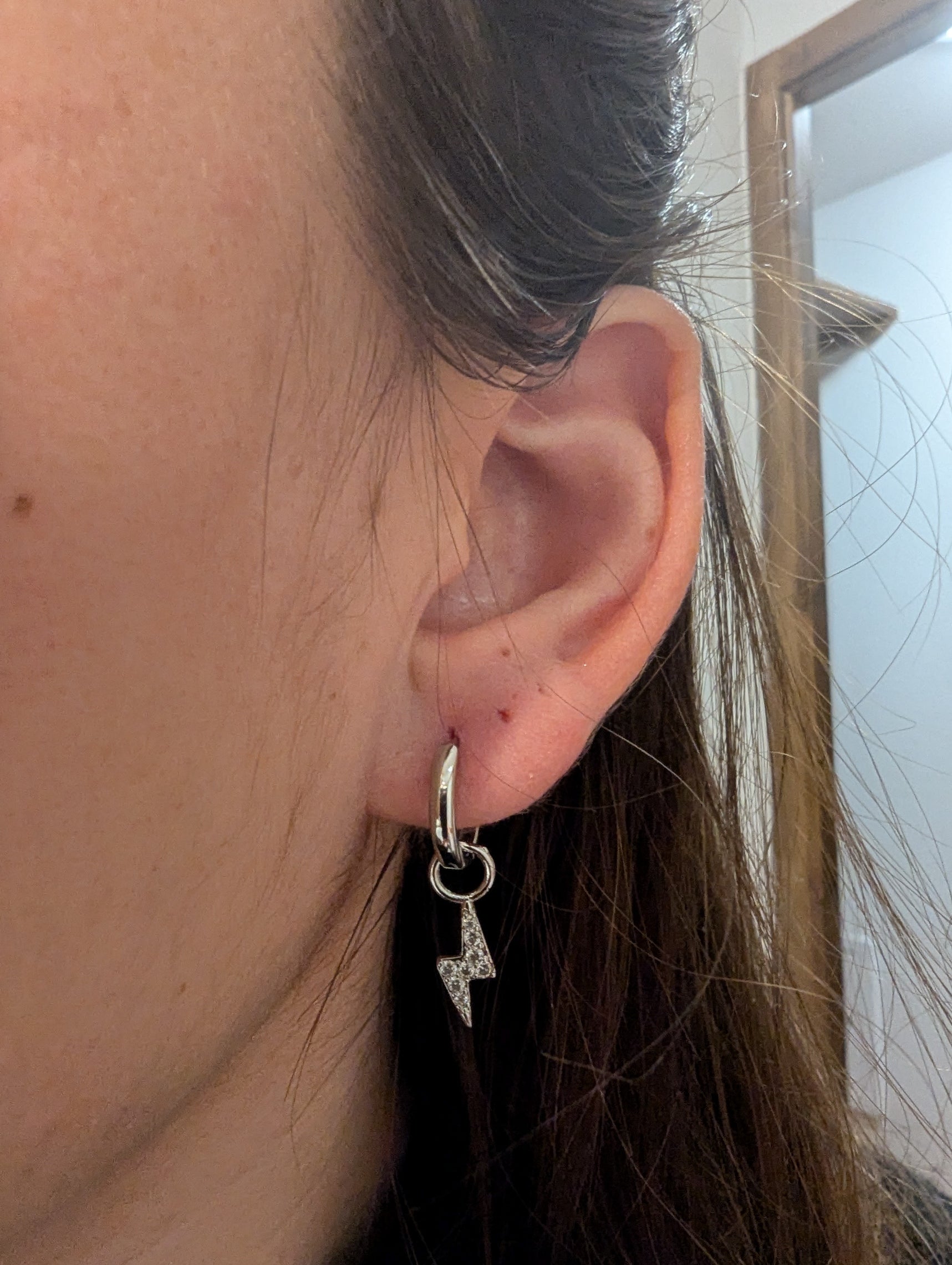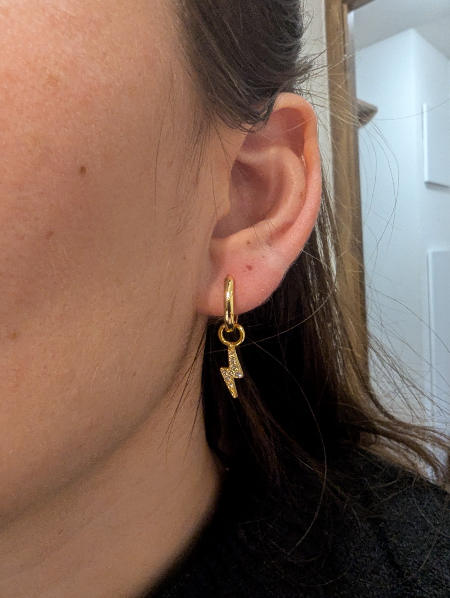 Apportez une touche d'éclat et de modernité à votre look avec ces boucles d'oreilles créoles ornées d'un pendentif en forme d'éclair. Fabriquées en acier inoxydable, elles se distinguent par leur design élégant et tendance. Le petit éclair suspendu est délicatement serti de strass étincelants, ajoutant une note glamour à votre tenue, de jour comme de nuit.