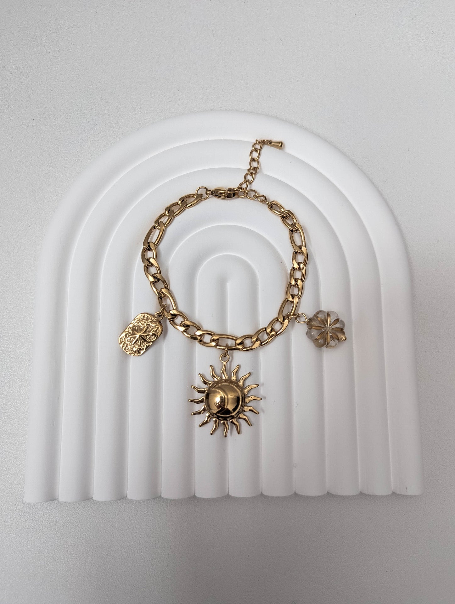 Laissez-vous envoûter par l’éclat doré du bracelet Lucina, une création lumineuse qui célèbre la puissance du soleil et la chance qui éclaire nos pas.