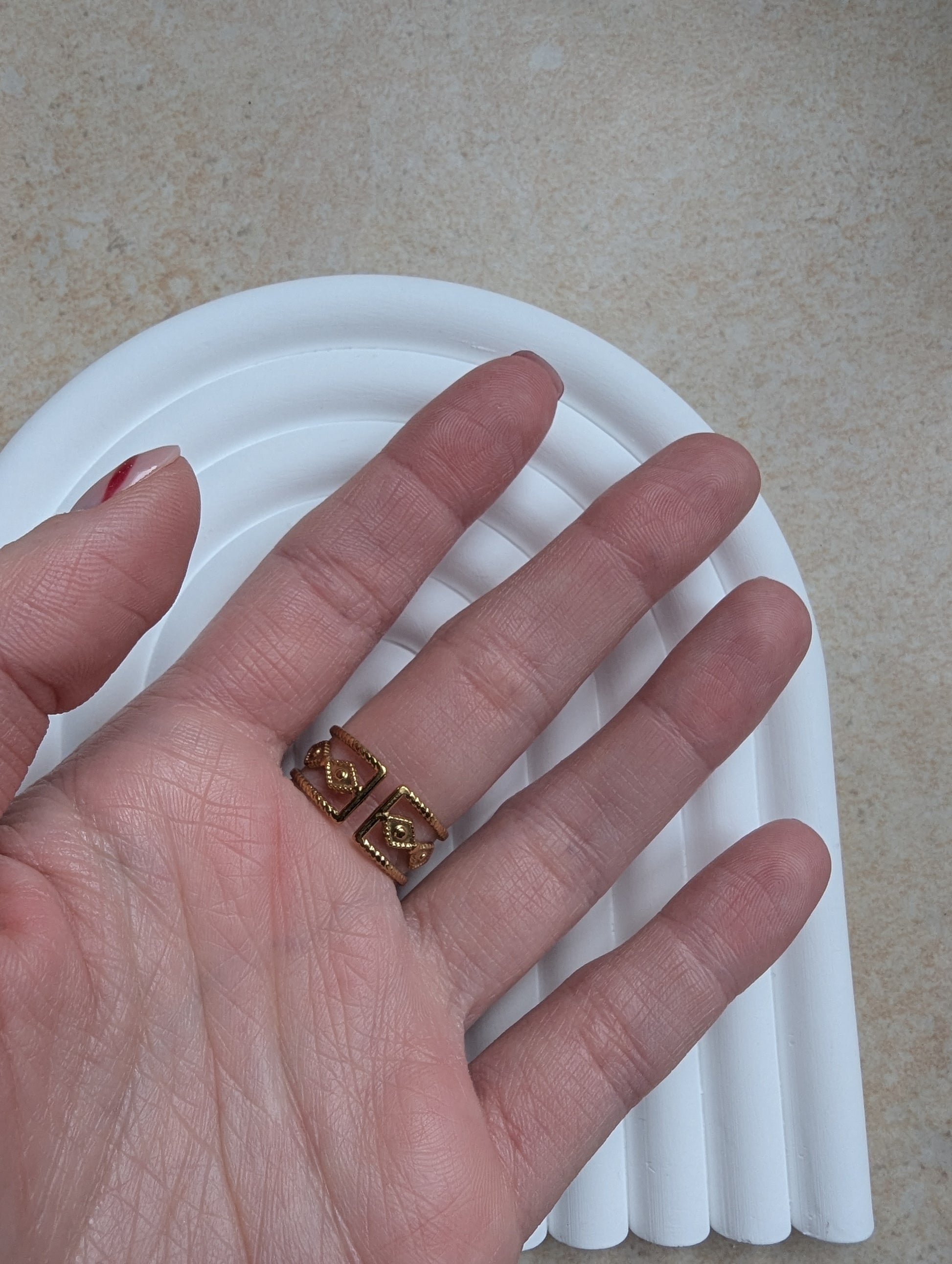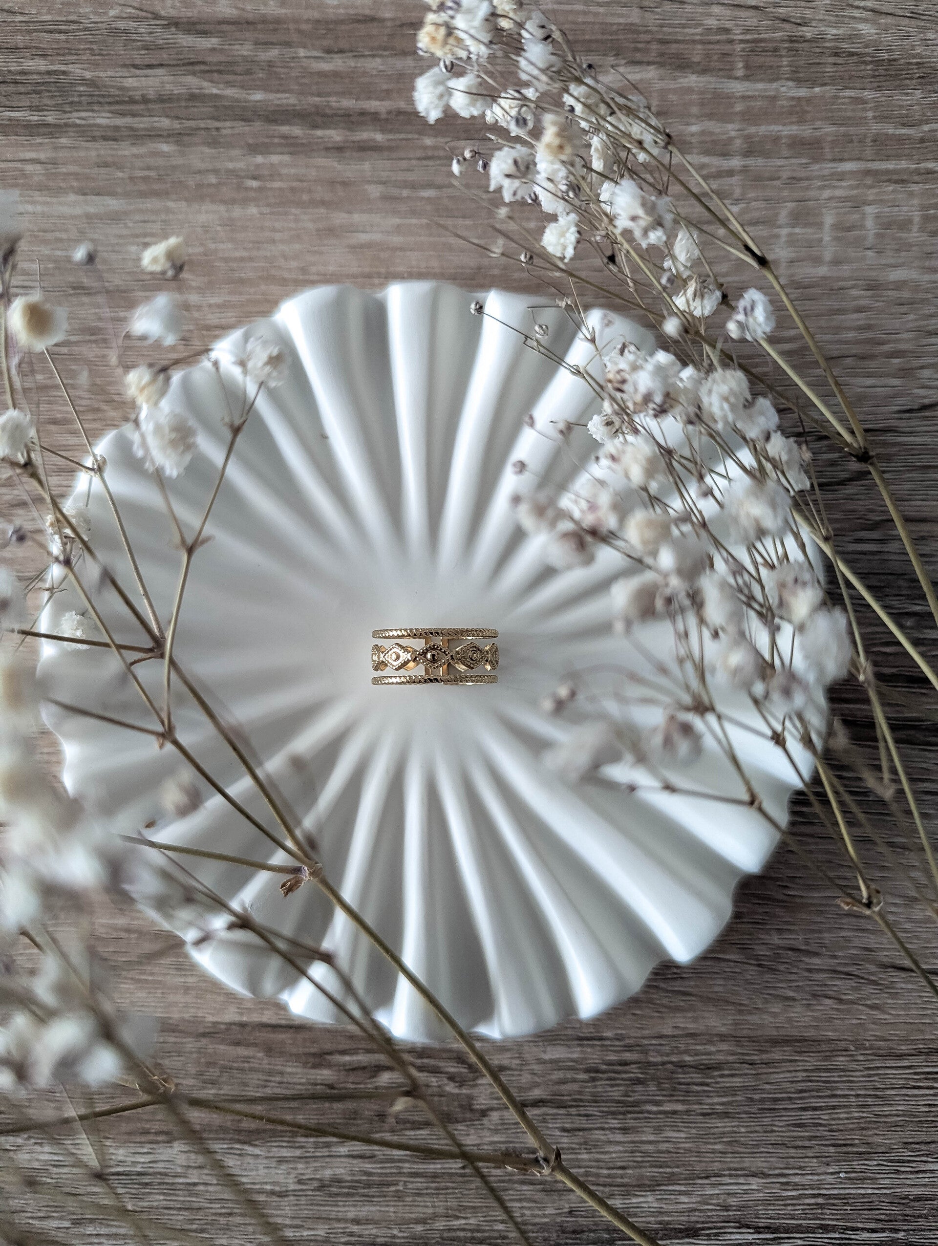 Laissez-vous séduire par la finesse de la bague “Sahara”, une pièce d’exception qui marie élégance et authenticité. Cette bague ouverte se distingue par son double anneau texturé et ses motifs losanges finement ciselés, évoquant les bijoux traditionnels revisités dans un style contemporain.